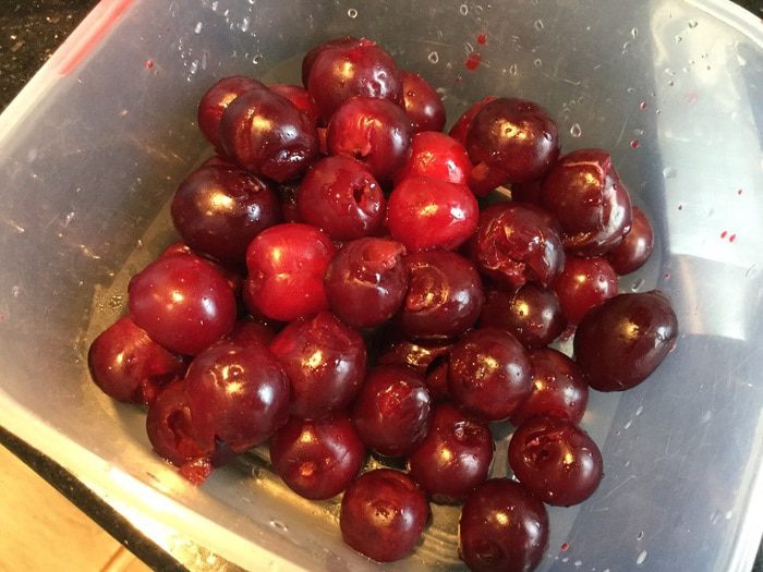 Вишню переберите, промойте, удалите косточки.