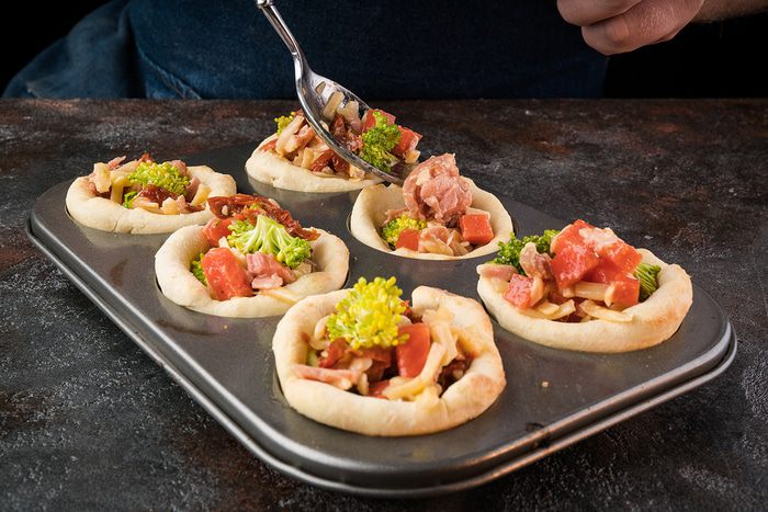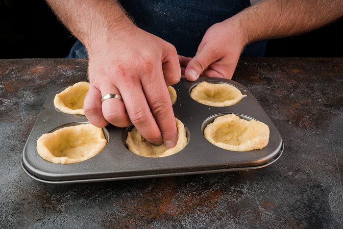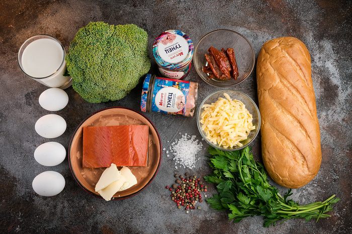 Формочки для кексов хорошо смазываем сливочным маслом. Духовку разогреваем до 200°С. Яйца с молоком, солью, перцем, зеленью немного взбить венчиком. Окунаем в получившуюся смесь кусочки батона и пальцами распределяем в формочках. Получившиеся корзинки запекаем до румяности в духовке минут 10.