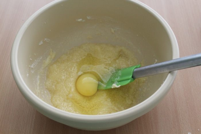 По одному ввести яйца, каждый раз хорошо взбивая.