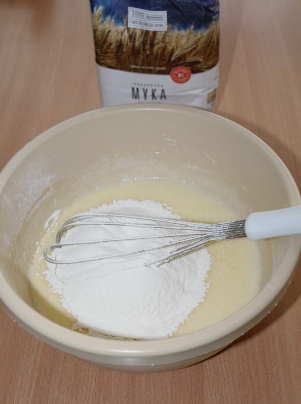 Всыпать просеянную с разрыхлителем муку (использовала муку «Рязаночка», которую мне отправили спонсоры конкурса).