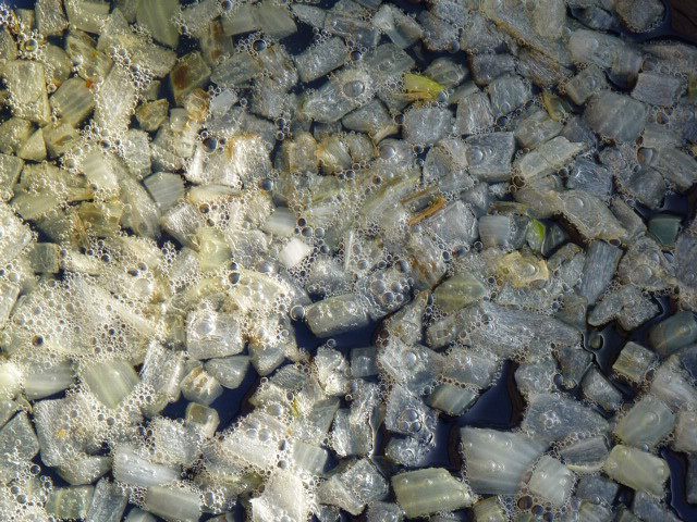 Пока жарится лук икру моем и убираем пленочки.