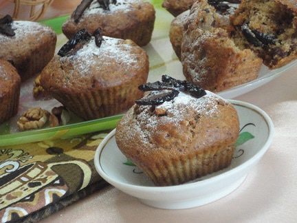 Кекс с черносливом — ну что тут может быть нового? Меня в этом рецепте заинтересовало использование карамелизированных орехов. И в этом его изюминка. Кексы получились мягкие, несухие, хотя масла там совсем немного, и с чудесными, нежно хрустящими орехами внутри.