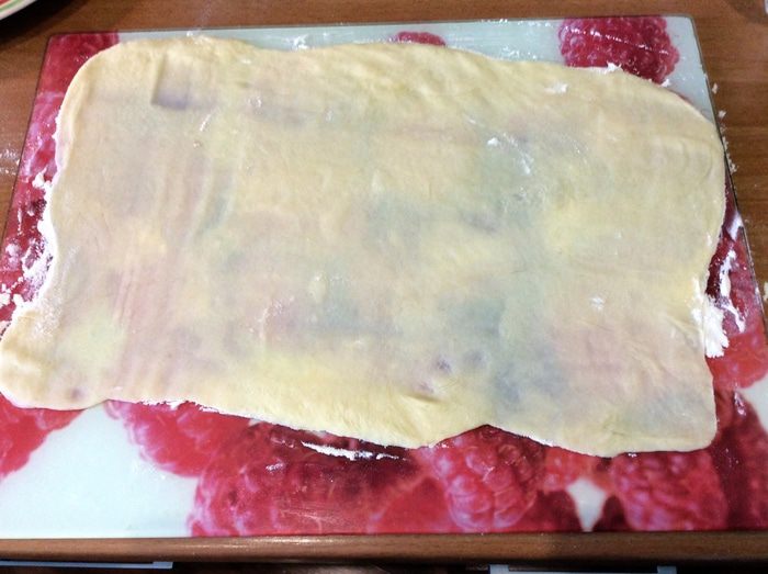 Высыпаем сухие ингредиенты в миску. Добавляем растопленное сливочное масло, сметану, кефир. Начинаем мешать массу столовой ложкой, при необходимости досыпаем муку. Когда масса станет густой, продолжаем замешивать тесто руками минут 10. Оно должно получиться мягким и эластичным. Даем тесту отдохнуть минут 30.