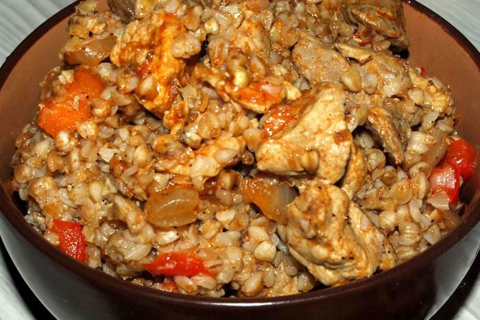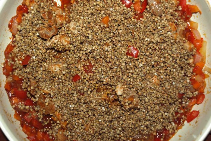 Гречку при необходимости перебрать. Промыть. Добавить к остальным ингредиентам.