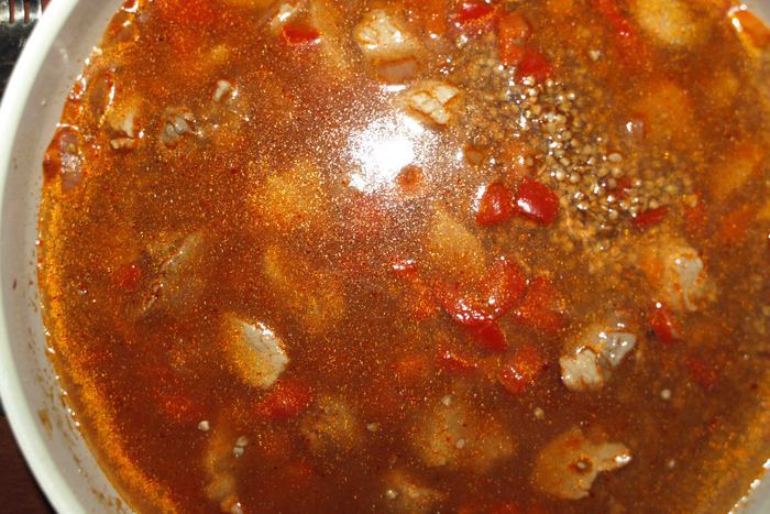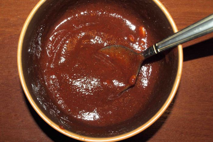 Томатную пасту смешать с солью, молотым перцем, лимонной кислотой, сахаром, мелко порубленным чесноком, тремя ложками воды.
