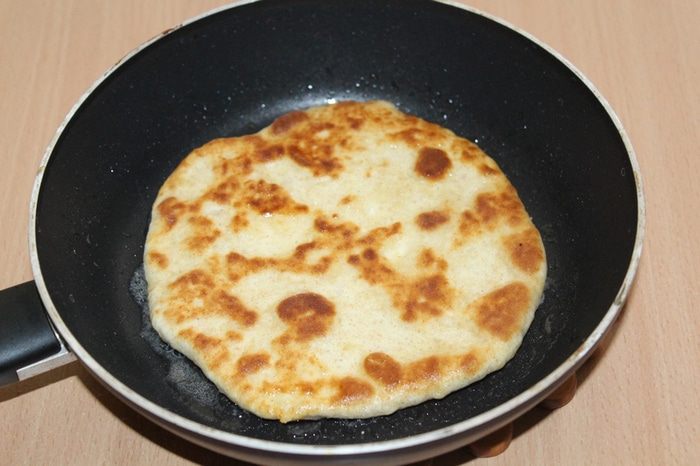 И обжарить с двух сторон на растительном масле. Если лепешки будут сильно надуваться, сделайте пару проколов вилкой.