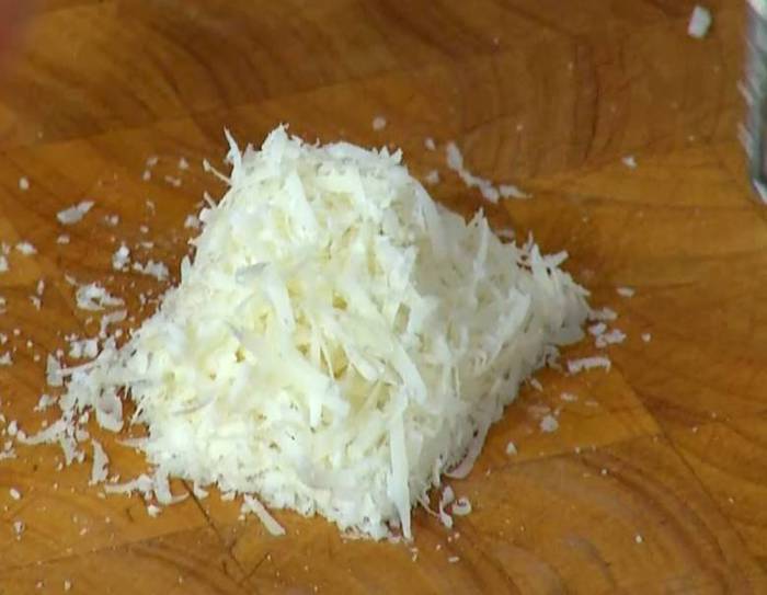 Сыр натереть на мелкой терке.