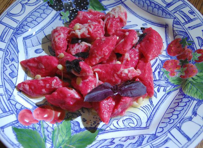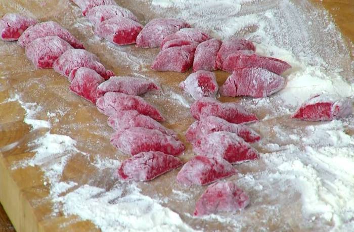 Можно сделать ньокки со шпинатом или молодой крапивой — они получатся зеленого цвета. Чтобы понять, сколько добавлять муки, ньокки нужно приготовить несколько раз, многое зависит от того, какая влажность у вас на кухне.