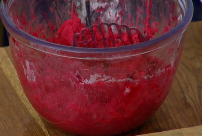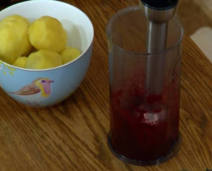 Свеклу вымыть, завернуть в фольгу, выложить на противень с солью и запекать в разогретой духовке около часа до готовности, затем почистить, порезать и измельчить блендером в пюре.