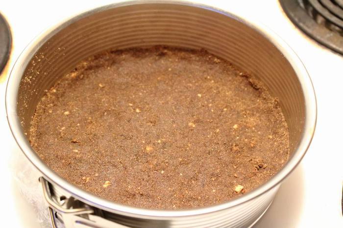 Готовую массу выложить в разъемную форму и отправить в холодильник.