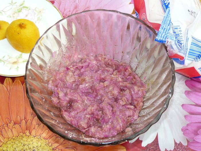 Перетереть руками до выделения сока. Добавить сок половины лимона и снова тщательно перетереть.