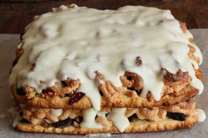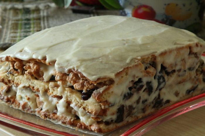 Пляцок должен выстояться с кремом часов 12-14. Тогда коржи хорошо пропитаются кремом и всеми остальными радостями и пляцок будет очень мягким. Поэтому время указано с учетом «лежки» в холодильнике. Количество начинки регулируйте по своему вкусу: кто любит больше чернослива, как я, используйте больше чернослива и меньше других составляющих, а кто больше орехи — тоже самое, используйте больше орехов. Ингредиенты даю на полный пляцок, я готовила из половины ингредиентов. Пляцок получился 22х22 см и очень тяжелый: его вес потянул на 1,65 кг. Ну, вроде бы ничего не забыла...если что, вы меня спросите и подправите. Приступаем?