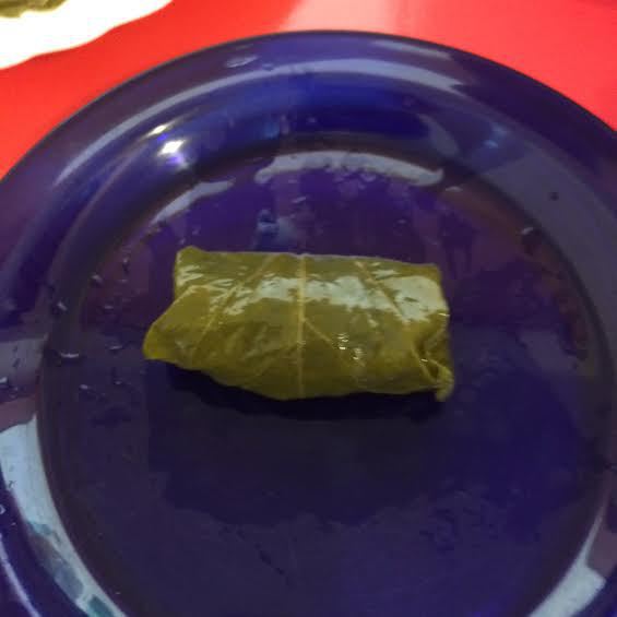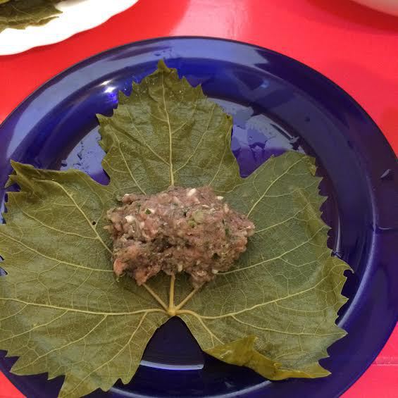 На виноградный лист выкладываем фарш.