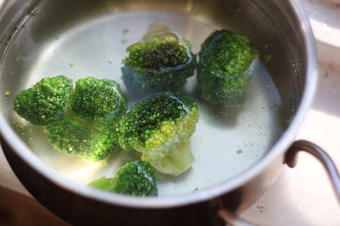 В подсоленной кипящей воде варим брокколи буквально минут 5, чтобы она осталась слегка хрустящей.