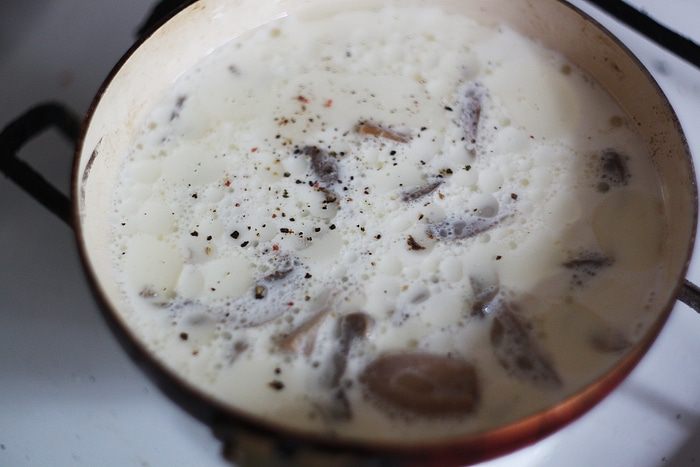 Добавляем сливки и перемешиваем, тушим пару минут.