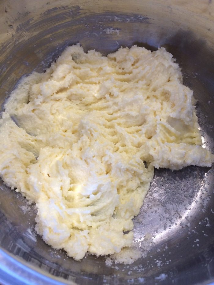 Сливочное масло растираем с сахаром. Масло должно быть мягким, я его подержала 20 секунд в микроволновке.