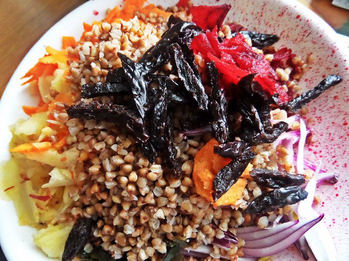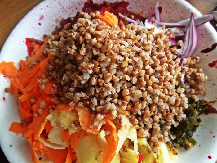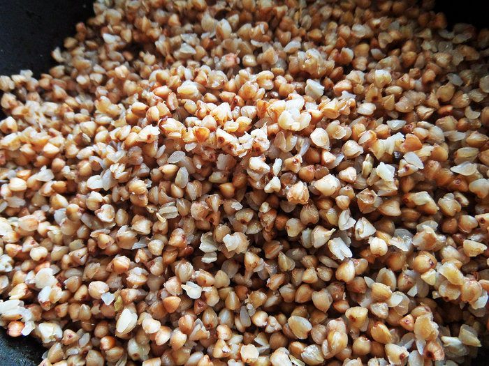 Гречку заранее отвариваем, чтобы была рассыпчатая.