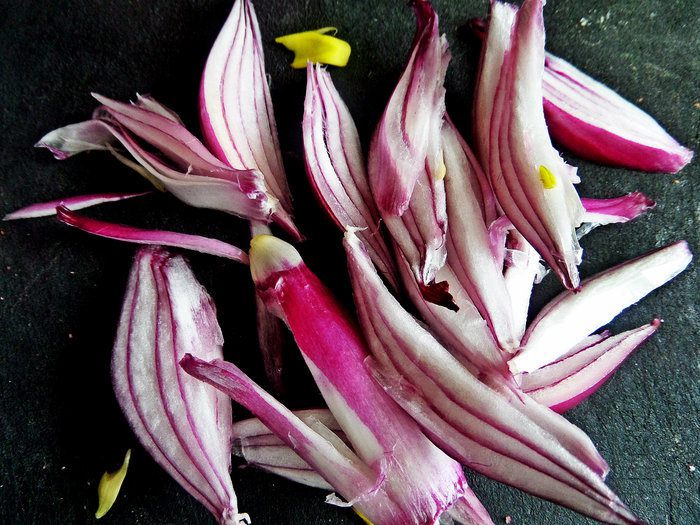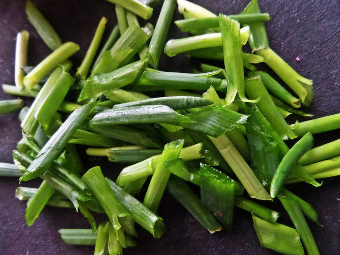 Перья лука нарезать крупно, брутально.