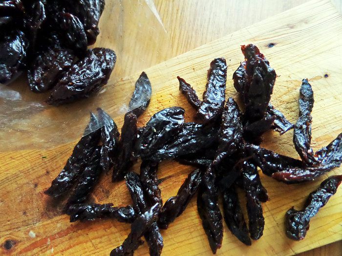 Чернослив промыть, отжать, нарезать примерно как лук.