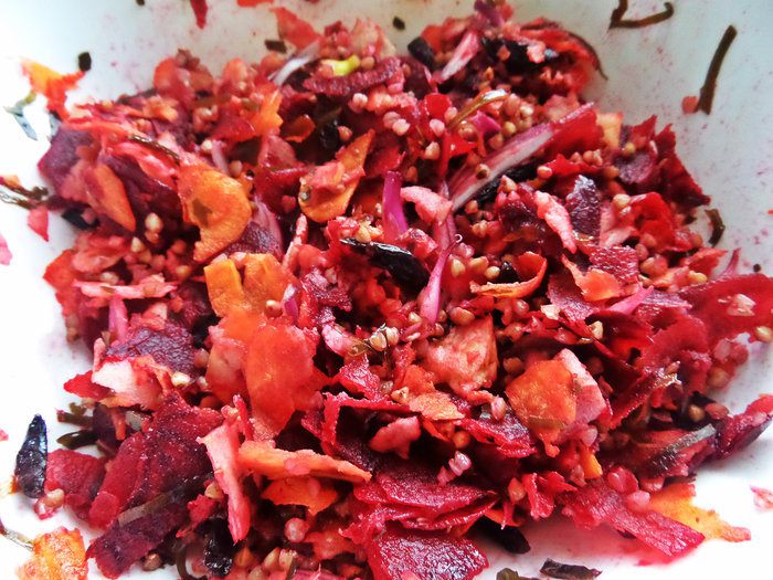 Да,чуть не забыла про яблоко. Тоже натираем как овощи, вместе с кожицей.