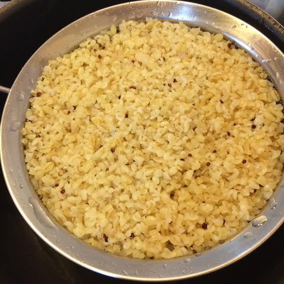 Отварить киноа и булгур в большом количестве воды с добавлением соли и оливкового масла.