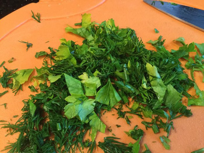 Нарежьте мелко зелень...