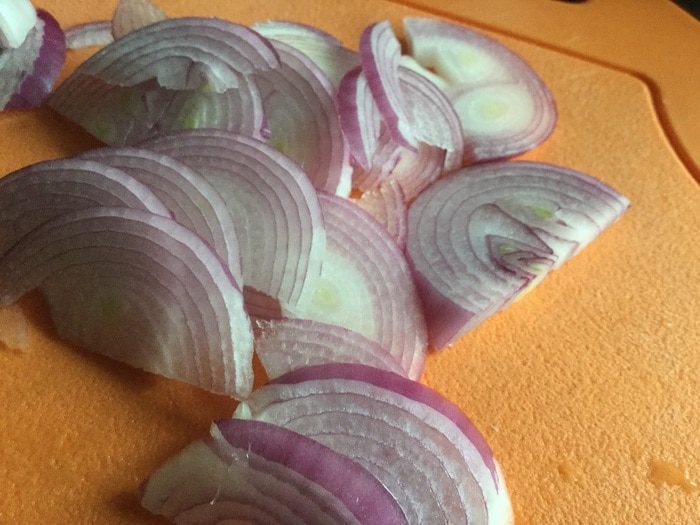 Лук почистите, нарежьте полукольцами и выложите на курочку.