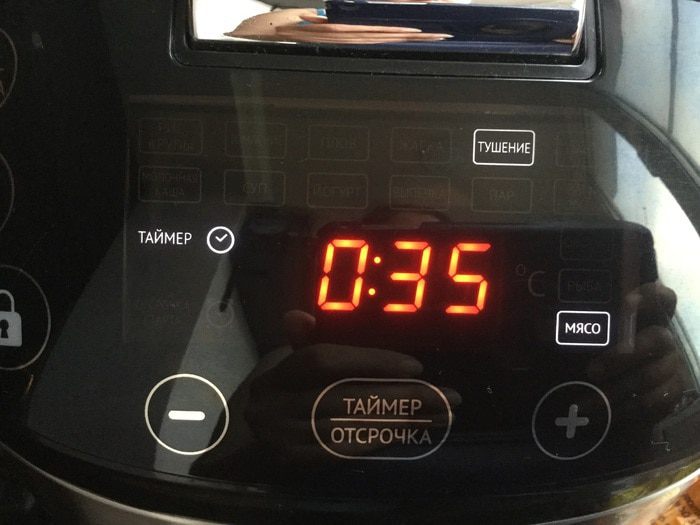 Закройте мультиварку и установите программу: тушение/мясо/35 минут.
