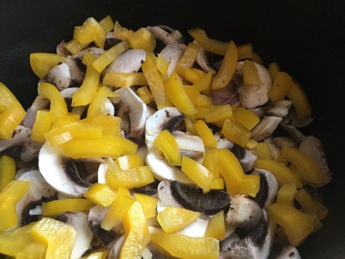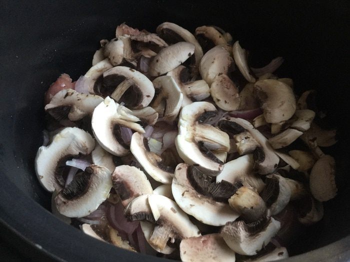 Сверху выложите тонко нарезанные шампиньоны.