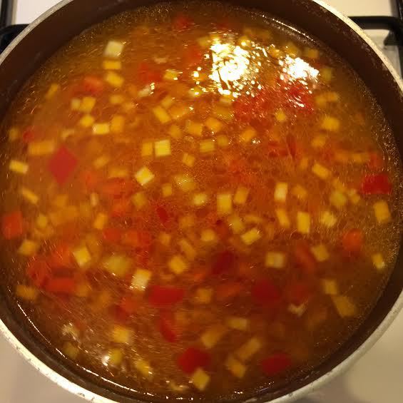 Добавляем овощи в суп и варим 5 минут.