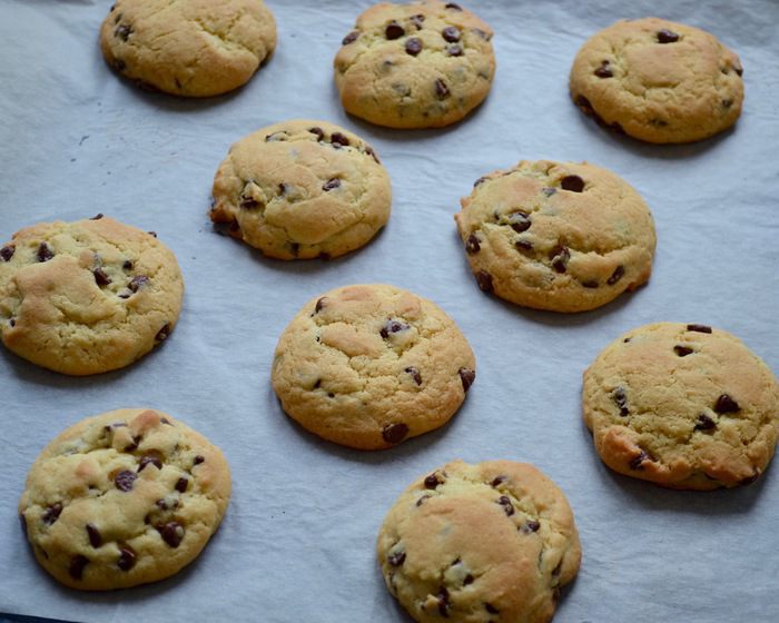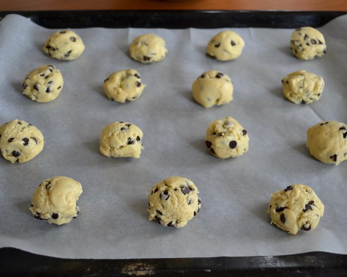 Итак, на застеленный пекарской бумагой противень выложить на небольшом расстоянии друг от друга шарики из теста, размером с грецкий орех или чуть больше, по желанию...