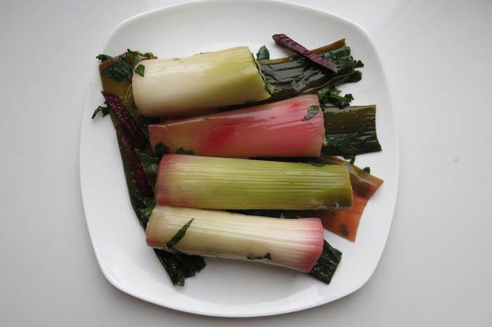 Порробуйте прасу — соленый порей, блюдо грузинской кухни. Такое соленье идеально подойдет к мясу на пикнике. Порей обладает более мягким вкусом, чем другие виды лука. За рецепт списибо Мари. Приятногоа аппетита!