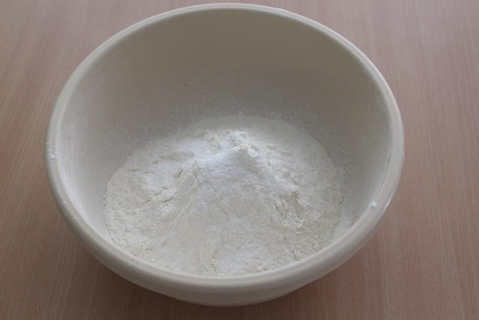 Муку просеять, добавить соль, сахар, соду.