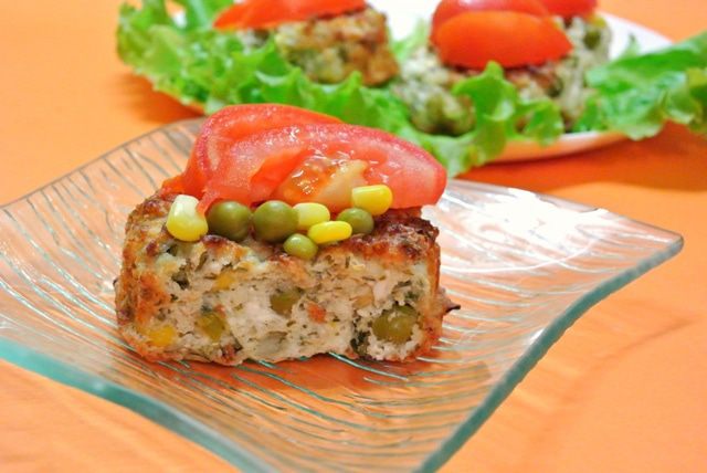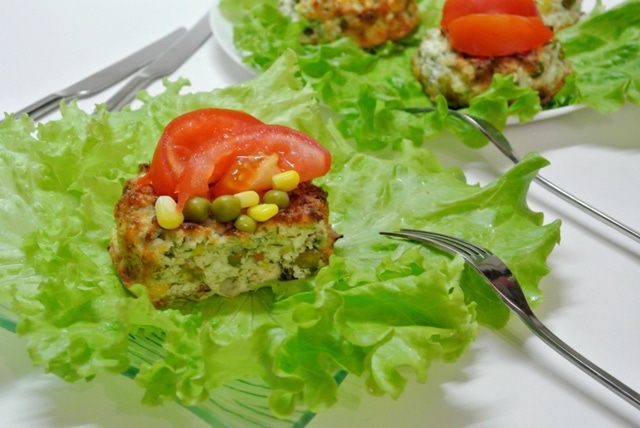 Домашнее блюдо. Продукты обычные, доступные. Использовала цельнозерновую муку, можно заменить на обычную пшеничную муку. Зеленый горошек и кукуруза вносят интересную овощную нотку во вкус и яркие вкрапления во внешний вид. Это что-то среднее между кексом и творожником. Мне все понравилось: и необычный вкус, и внешний вид.