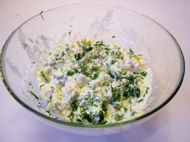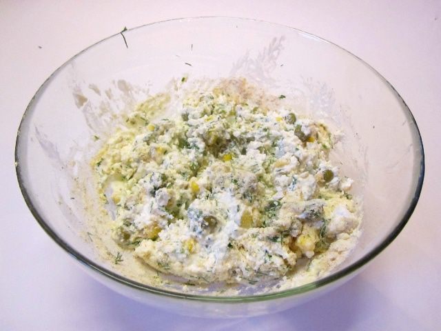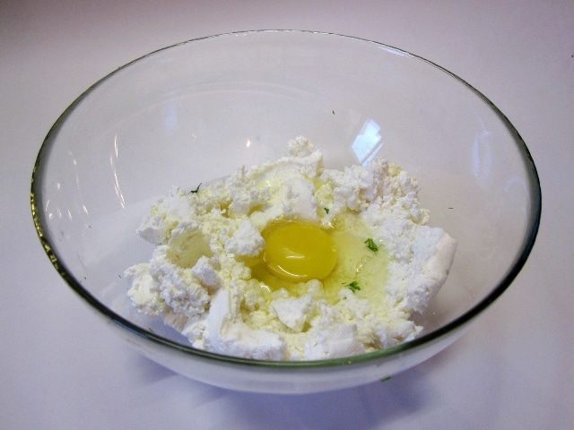 В творог вбить яйцо.
