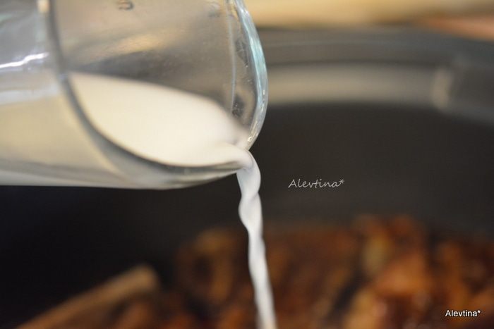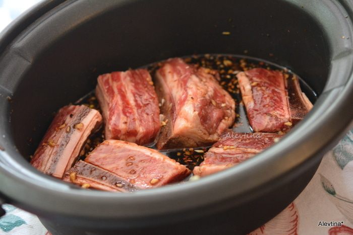 Добавить короткие говяжьи ребра. Закрыть крышкой и готовить 8 часов медленный режим или 4 часа быстрый.