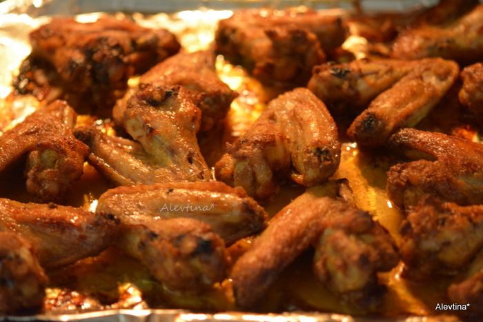 За 5 минут до готовности окунуть каждое крылышко в готовую смесь и вернуть на гриль или в духовку на 2 мин. сторона.