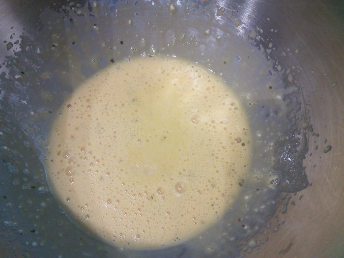 Желтки отделить от белков. Белки взбить со щепоткой соли в крепкую пену. Желтки смешать со сливочным сыром.