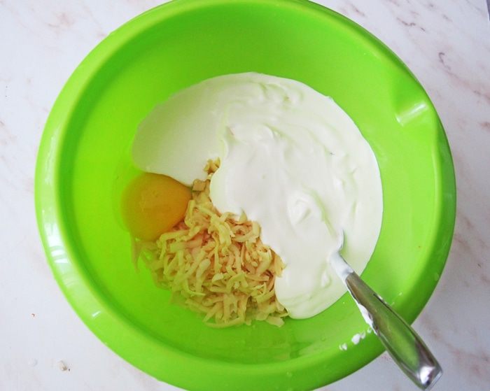 Готовим соус для запекания. Смешиваем сметану, яйцо и сыр. Заправляем молотым душистым перцем.