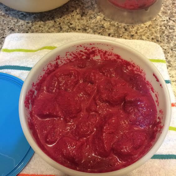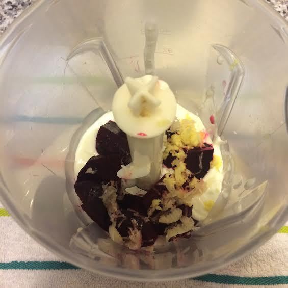 Для второго маринада: вареную свеклу порезать кубиками. В блендере взбить йогурт, свеклу, 1 ч.л чеснока и 1 ч.л. имбиря и 1/2 ч.л соли. Добавить 2 ст.л оливкового масла, остальные специи и еще раз хорошо взбить.