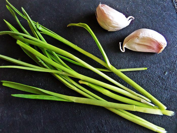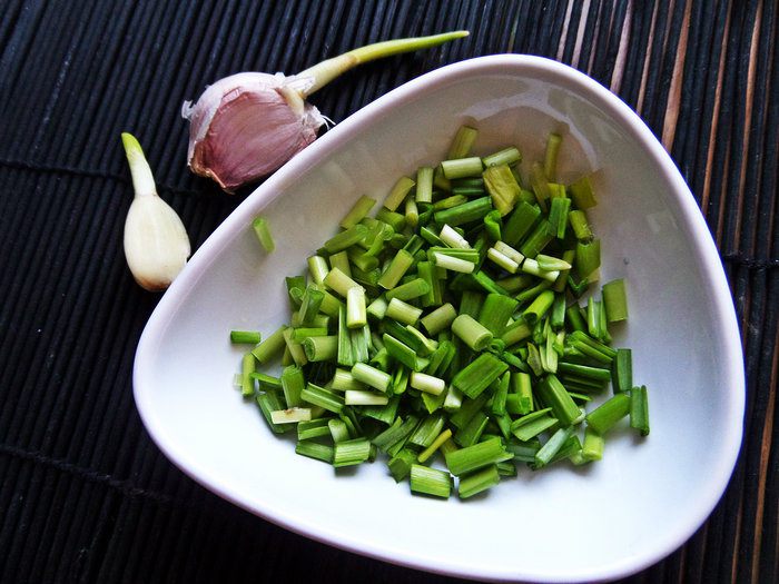Чеснок использовала ростки, но можно и зубчик взять. Ростки нежнее по вкусу.