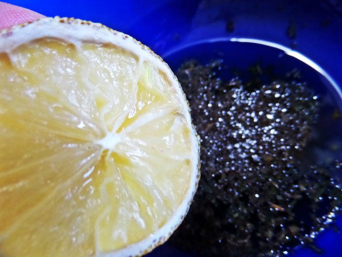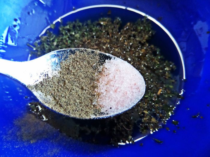 Делаем заправку. Смешиваем растительное масло и сухую зелень.