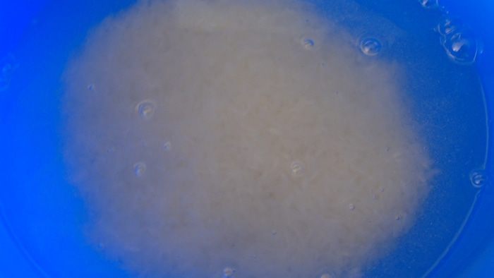 Рис залить горячей водой и оставить на 6 часов, воды нужно столько чтоб покрыла рис на палец.