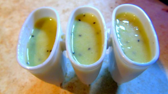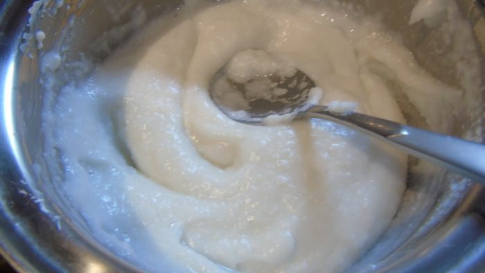 банан и киви пюрируйте, продолжая взбивать постепенно вводите рисовую массу.
