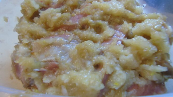 Хорошо обволакиваем каждый кусочек в лук и оставляем мариноваться на 5-6 часов.