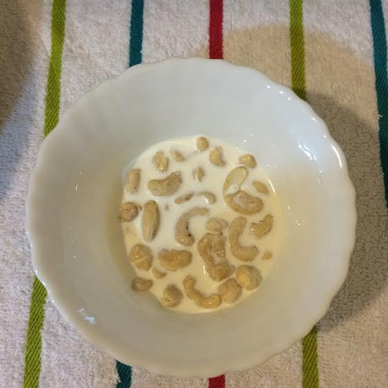 Кешью залить сливками и тоже отправить в холодильник, минимум на 2 часа. Если у вас аллергия на орехи, то вы можете добавить только сливки.