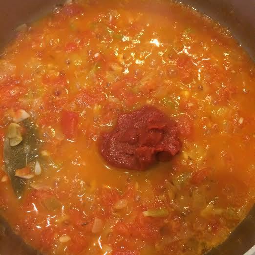 Добавить томатную пасту и перемешать.