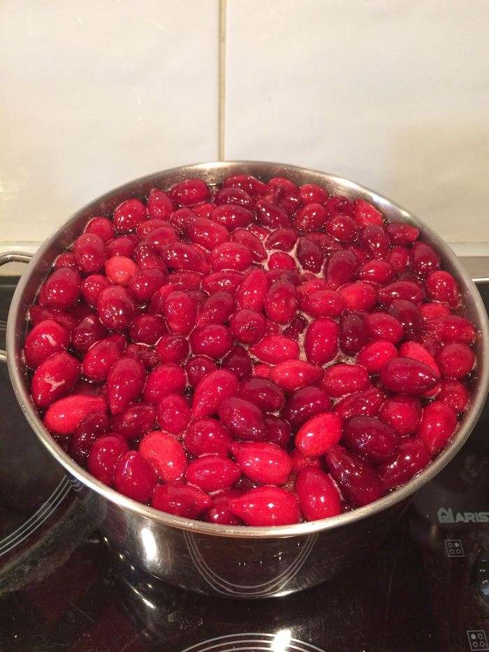 Подготавливаем кизил. Очищаем от веточек. Промываем. Косточки оставляем. Для варенья подойдут и переспелые ягоды, и твердые. Если у вас ягоды мягкие, обходитесь с ними аккуратно, чтобы не нарушить целостность. А если же наоборот — ягоды твердые, то сделайте в каждой ягоде небольшие проколы зубочисткой, чтобы выделился сок.