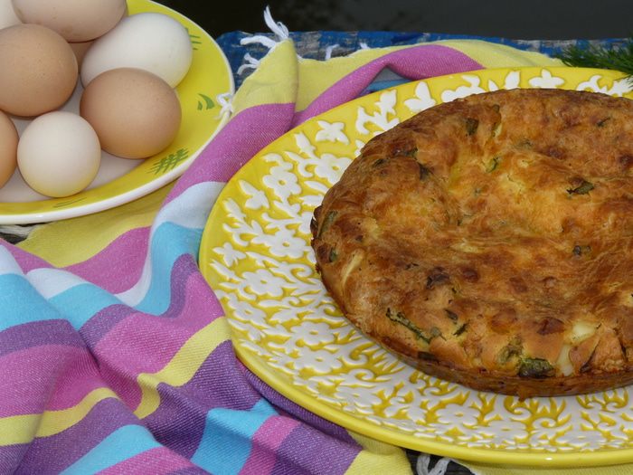 Рецепт этого омлета я давным-давно увидела в одной утренней кулинарной программе (даже названия не помню), которую вел эрудит Борис Бурда. Приготовила по рецепту, мне понравилось, каждую весну с тех пор готовлю это вкусное и полезное блюдо. Омлет получается сочным, ароматным. По оригинальному рецепту омлет жарят и подают, полив ряженкой. В силу вкусовых пристрастий нашей семьи я внесла коррективы: исключила ряженку, а омлет запекаю в духовке, обильно посыпав тертым сыром. Угощайтесь!!!