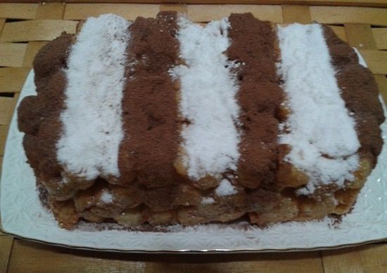 Украсить какао и сахарной пудрой. Я в этом варианте использовала какао несквик.